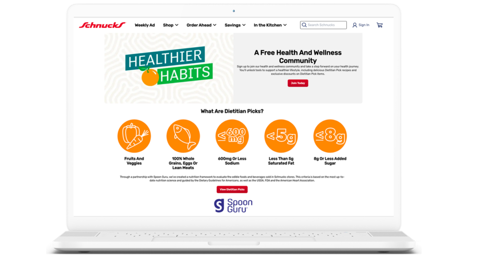 Spoon Guru is committed to creating solutions based on their client’s objectives and unique needs. For us it was a dynamic TAG to highlight the nutrient dense items in our stores, which incorporates a set of intricate nutrition rules. This innovative approach has empowered us to efficiently analyze food offerings resulting in an approachable way for customers to easily find and choose healthier options when shopping at Schnucks. These tags are not only integrated in store but also online and within our loyalty rewards app, ensuring we can support customers on their health journey no matter how they shop.”