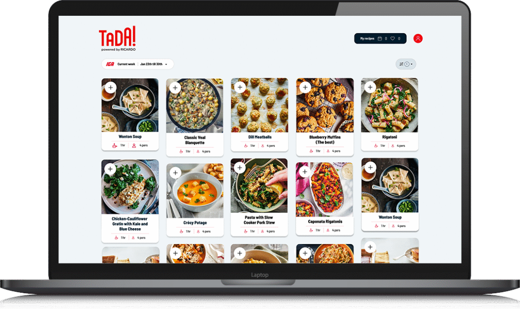 Branded as TADA!, the front-end experience leverages a personalised meal planning interface, available in both English and French, that allows shoppers to browse curated recipes automatically ranked based on the week’s promotional offers.
